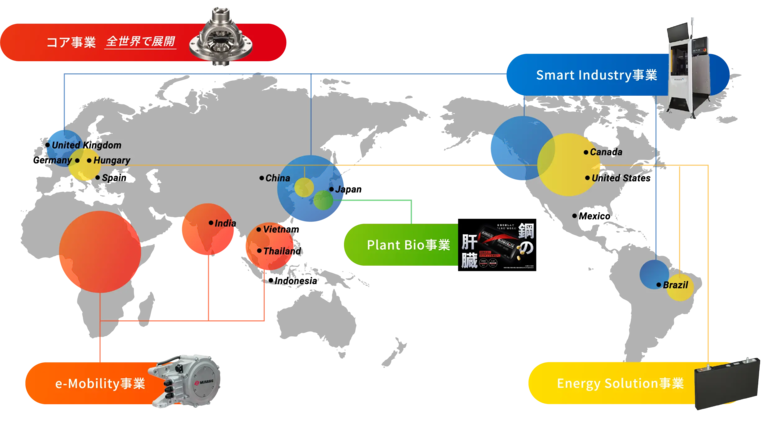 武蔵精密工業は四輪/二輪車用向けに、電動化や自動運転を見据えた次世代パワートレインならびにステアリング、シャーシ部品の開発/製造/販売を行っています。また、先端AI技術開発によるインダストリー4.0の推進、幅広い領域でのSDGsの達成貢献に向けたエネルギーソリューション事業、農業、植物バイオ事業など、オープンイノベーションの展開により新事業の創出・拡大にも注力しています。