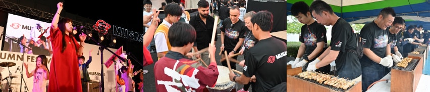 スポーツ大会や忘年会、レクリエーションなど、さまざまな行事を開催。なかでも、従業員とその家族の福利厚生、地域貢献を目的とした「秋祭り」は30年以上も続く一大イベントです。手筒花火や屋台、軽音部ライブなど、多彩な催しで地域のみなさまに親しまれています。