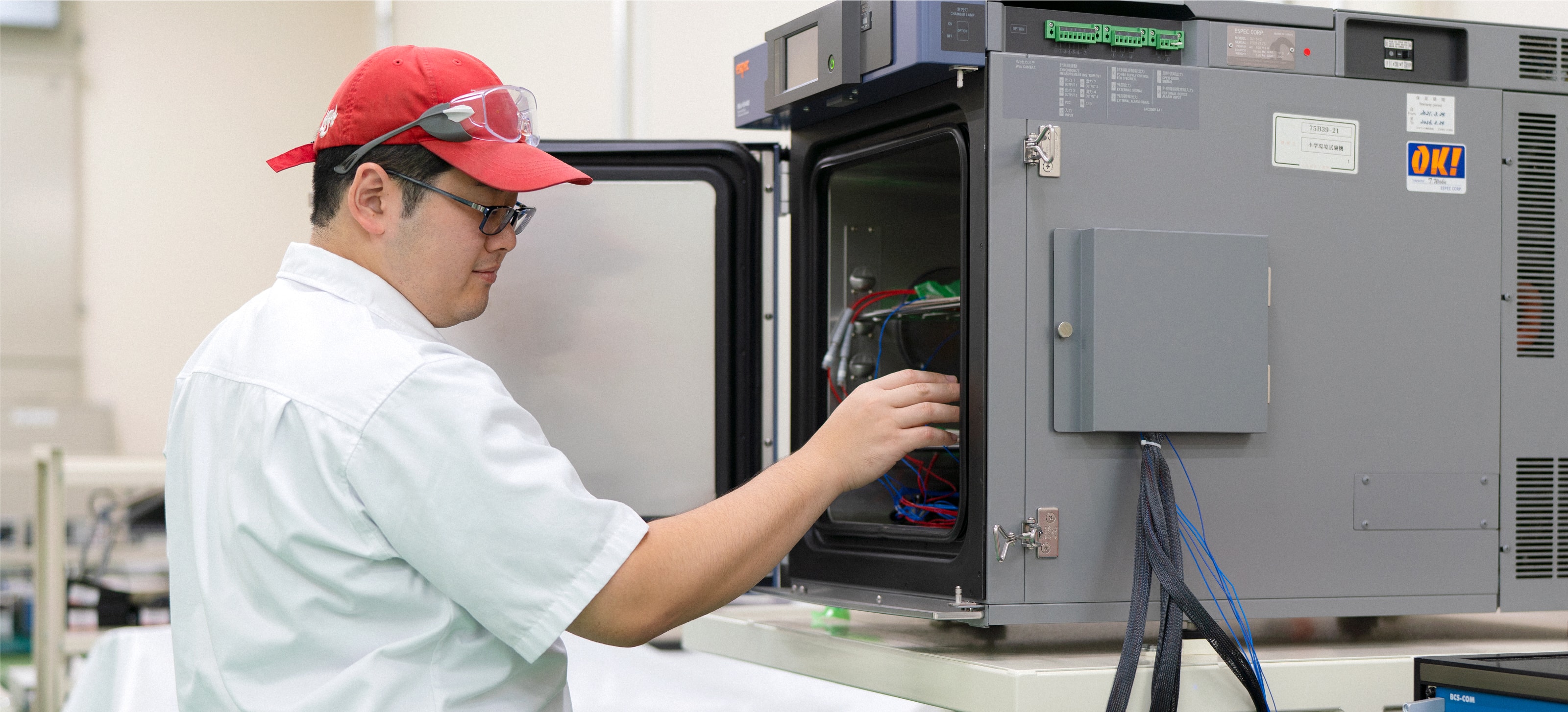こうした市場動向を受け、ムサシは2輪EV用バッテリーの開発に参入しました。私たちバッテリー技術開発Gr.は、交換式バッテリーの耐久性向上や長寿命化をめざし、研究開発に取り組んでいます。駆動系部品の製造で培った技術力を生かしながら、新分野で世界市場に挑む取り組みで、とてもワクワクする仕事です。また、世界の環境負荷低減に貢献する意義ある事業であり、大きなやりがいがあります。